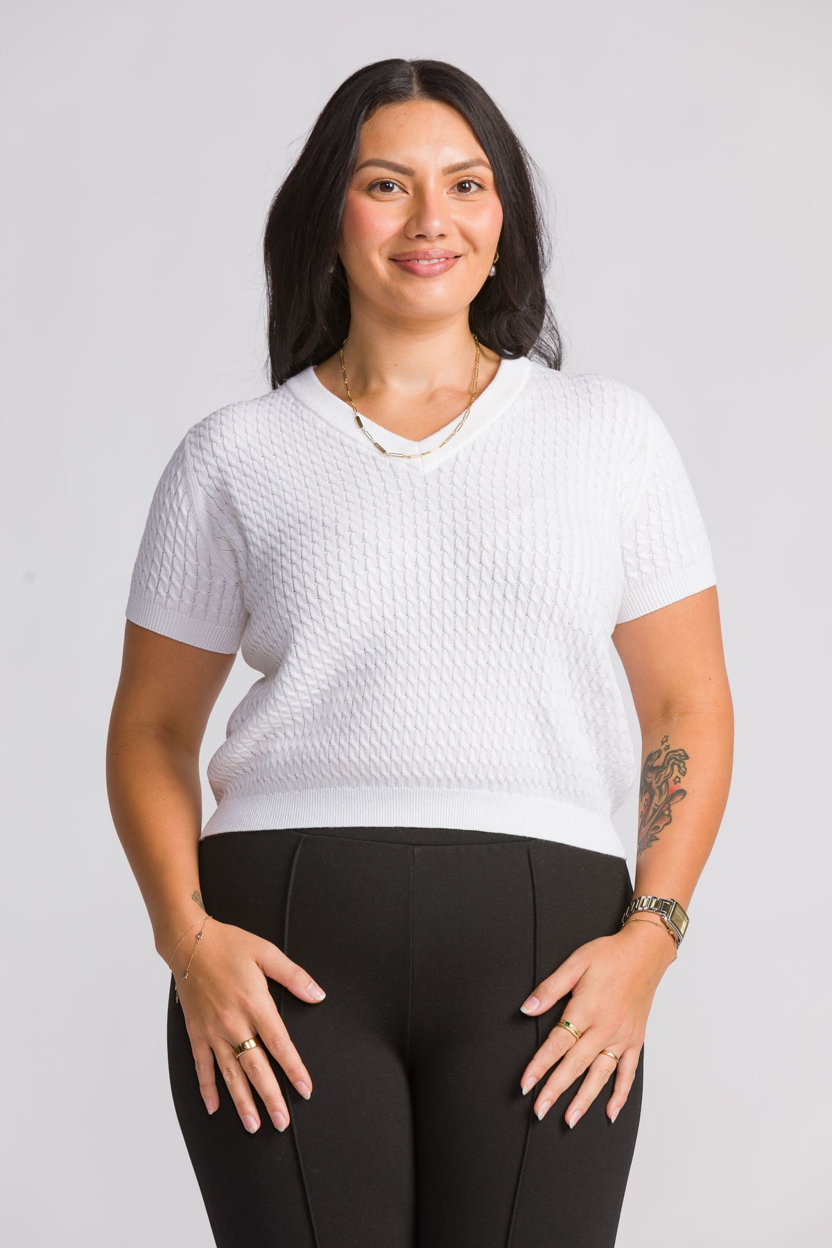 Daisy Short Sleeve Knit Top - White
